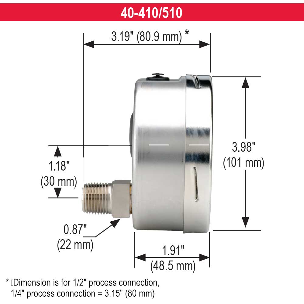 N/A Ammonia and refrigeration gauges with dials reading in both pressure and temperature are available in 400/500 Series 2-1/2" and 4" sizes |