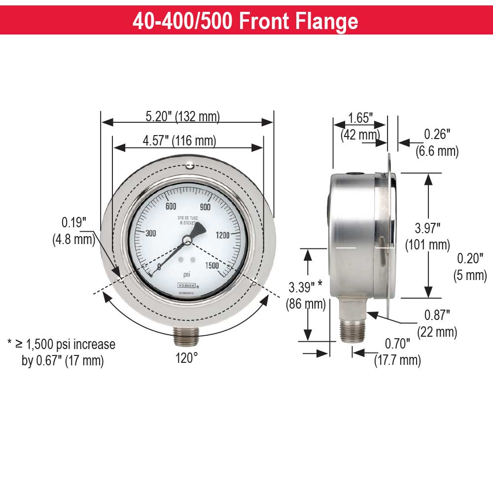 Operating conditions including, but not limited to, system pressure, media compatibility and ambient conditions must be considered when selecting gauges and accessories. Improper selections and use of gauges could possibly cause gauge failure and lead to possible property damage or personal injury. Refer to the American National Standard ANSI B40.1 for the correct selection and use of gauges. A copy of this standard may be obtained from the American Society of Mechanical Engineers, United Engineering Center, 345 East 47th Street, New York, NY 10017. In keeping with and for purposes of product and/or manufacturing process improvements, NOSHOK, Inc. reserves the right to make design changes without prior notice. |