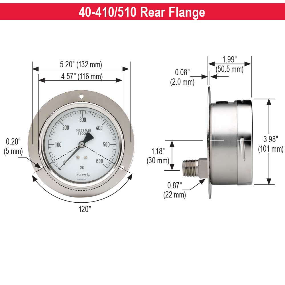 N/A Stainless Steel Rear Flange, -40 Degree Service Gauge Fill |