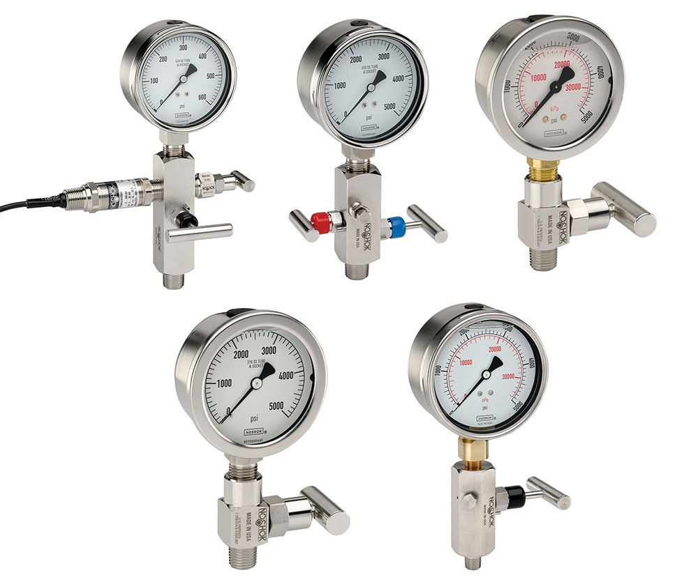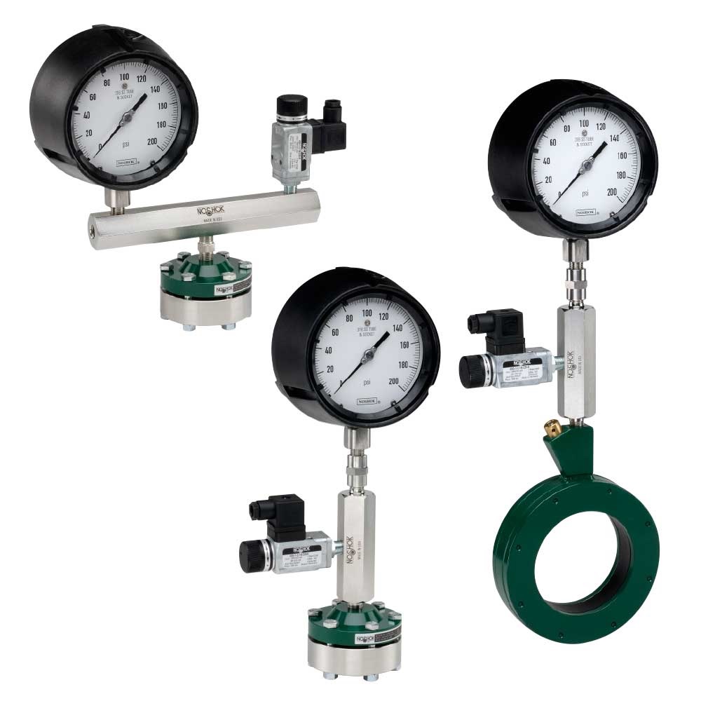 Operating conditions including, but not limited to, system pressure, media compatibility and ambient conditions must be considered when selecting gauges and accessories. Improper selections and use of gauges could possibly cause gauge failure and lead to possible property damage or personal injury. Refer to the American National Standard ANSI B40.1 for the correct selection and use of gauges. A copy of this standard may be obtained from the American Society of Mechanical Engineers, United Engineering Center, 345 East 47th Street, New York, NY 10017. In keeping with and for purposes of product and/or manufacturing process improvements, NOSHOK, Inc. reserves the right to make design changes without prior notice. |
