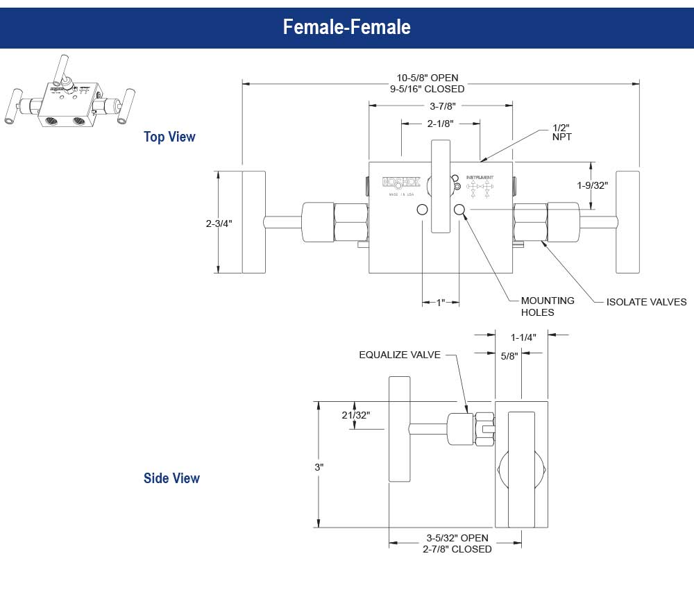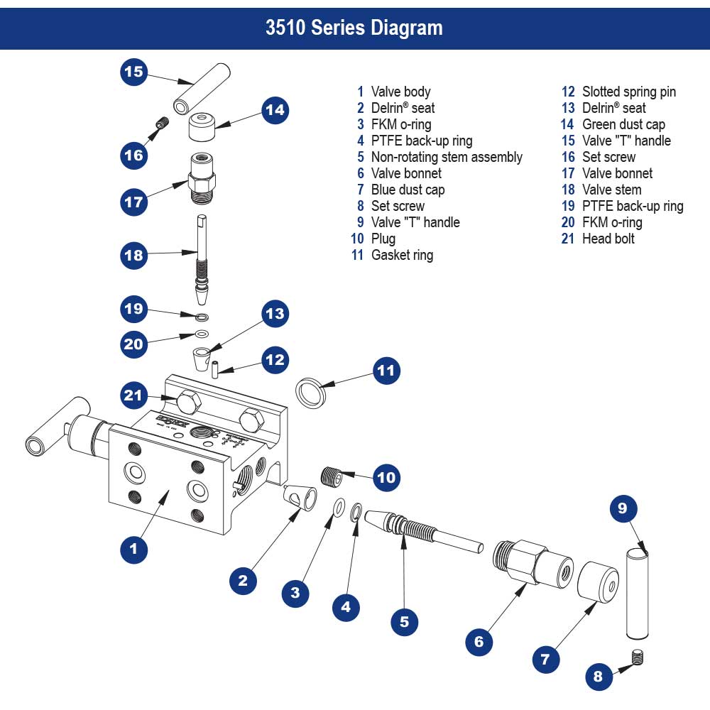 All NOSHOK valve products conform to the MSS SP-99 instrument valves standards, and valves supplied with packing also conform to MSS SP-132 compression packing systems for instrument valves standard. Please note that the standard o-ring in all the NOSHOK valves is FKM and the standard handles are isolation "T" handles (HL8) and equalizing "T" handles (HL2). The handle material will always match the material of the valve, unless otherwise specified. For example, the "T" handle on the 3510-MFC will be steel. When only the standard configuration is needed, no additional designations are necessary. Please consult the factory for special application requests. |