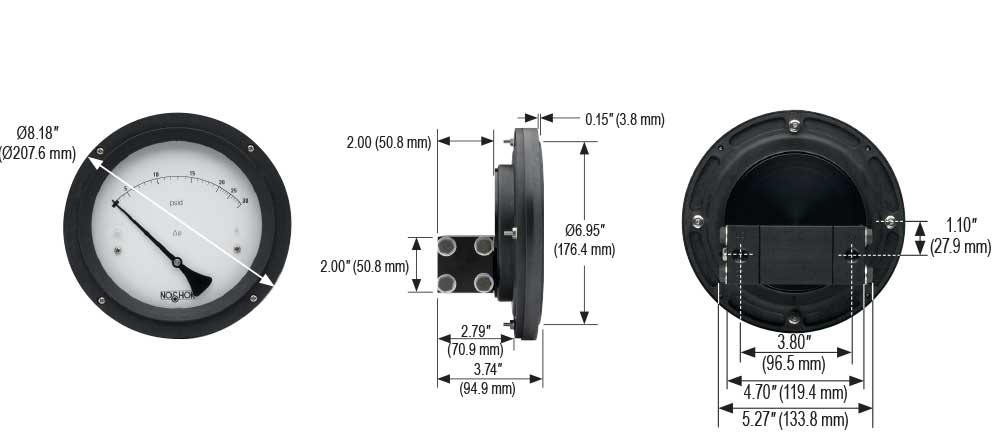 Operating conditions including, but not limited to, system pressure, media compatibility and ambient conditions must be considered when selecting gauges and accessories. Improper selections and use of gauges could possibly cause gauge failure and lead to possible property damage or personal injury. Refer to the American National Standard ANSI B40.1 for the correct selection and use of gauges. A copy of this standard may be obtained from the American Society of Mechanical Engineers, United Engineering Center, 345 East 47th Street, New York, NY 10017. In keeping with and for purposes of product and/or manufacturing process improvements, NOSHOK, Inc. reserves the right to make design changes without prior notice. |