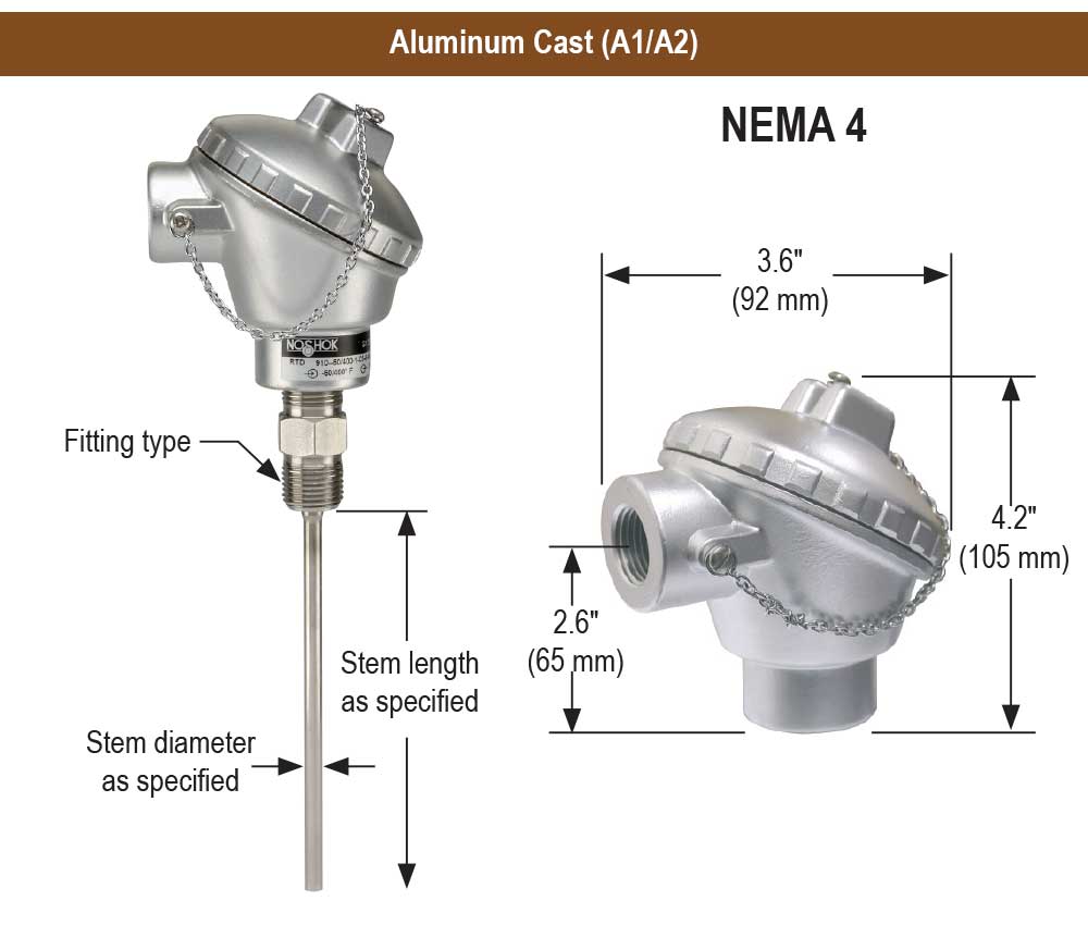 N/A NOSHOK's Probe Type Industrial RTD is available with a variety of fitting sizes and probe diameters. |