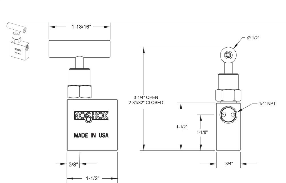 Please note that the standard o-ring in all the NOSHOK mini valves is FKM and the standard handles are brass round knurled (HL3) handles, steel mini "T" handles (HL1), and 316SS mini "T" handles (HL1). The handle material will always match the material of the valve, unless otherwise specified. For example, the round knurled (HL3) on a 102-FFB will be brass. When only the standard configuration is needed, no additional designations are necessary. Please consult the factory for special application requests. All NOSHOK valve products conform to the MSS SP-99 instrument valves standards, and valves supplied with packing also conform to MSS SP-132 compression packing systems for instrument valves standard. |