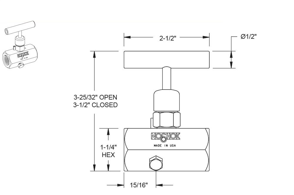 Please note that the standard o-ring in all the NOSHOK valves is FKM and the standard handles are "T" handles (HL2). The handle material will always match the material of the valve, unless otherwise specified. For example, the "T" handle (HL2) on the 602-FFC will be steel. When only the standard configuration is needed, no additional designations are necessary. Please consult the factory for special application requests. O-Ring - Other o-ring materials available on request. All 316SS products meet the requirements of NACE MR0175/ISO 15156-3. All NOSHOK valve products conform to the MSS SP-99 instrument valves standards, and valves supplied with packing also conform to MSS SP-132 compression packing systems for instrument valves standard. |