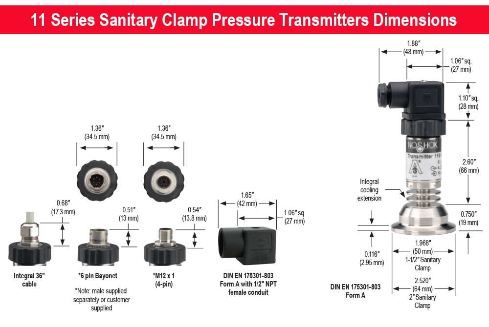 NOSHOK pressure transmitters or transducers are not to be used in heat sterilization systems as stated in 3A Standard 74-03 paragraph D10.1.2. Diaphragm seal must be installed facing downward or in a vertical position for drainability. Do not install diaphragm seal facing in an upward position. |