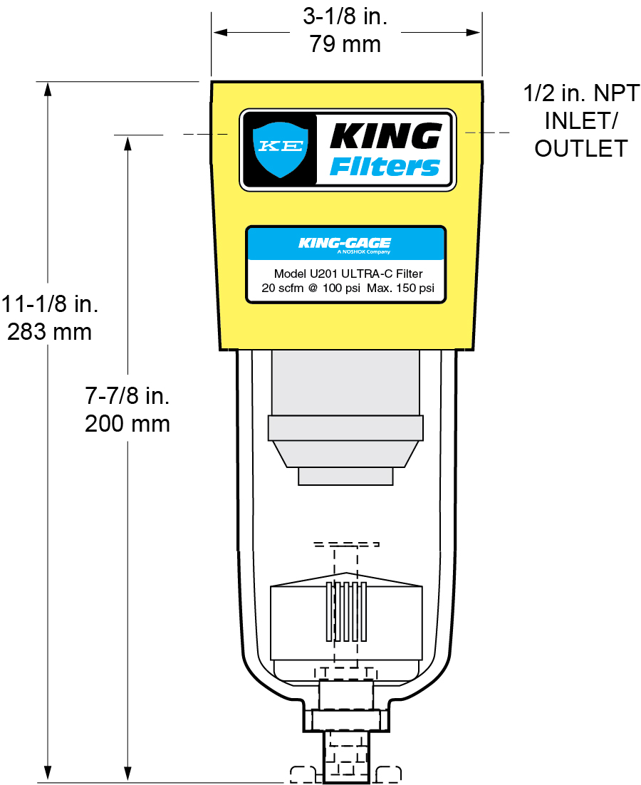 | U201 | N/A U201 Single Stage Series 20 scfm Ultra-C Filter with Auto Drain | Capacity (Flow) at 100 psig N/A 20 scfm | Capacity (Flow) at 7 bar N/A 34 m³/h | Sump Drain N/A Automatic, Floated Actuated Drain |